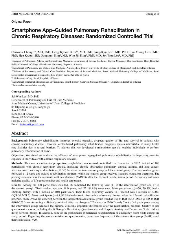 Title : Smartphone App-Guided Pulmonary Rehabilitation in Chronic Respiratory Diseases: Randomized Controlled Trial
